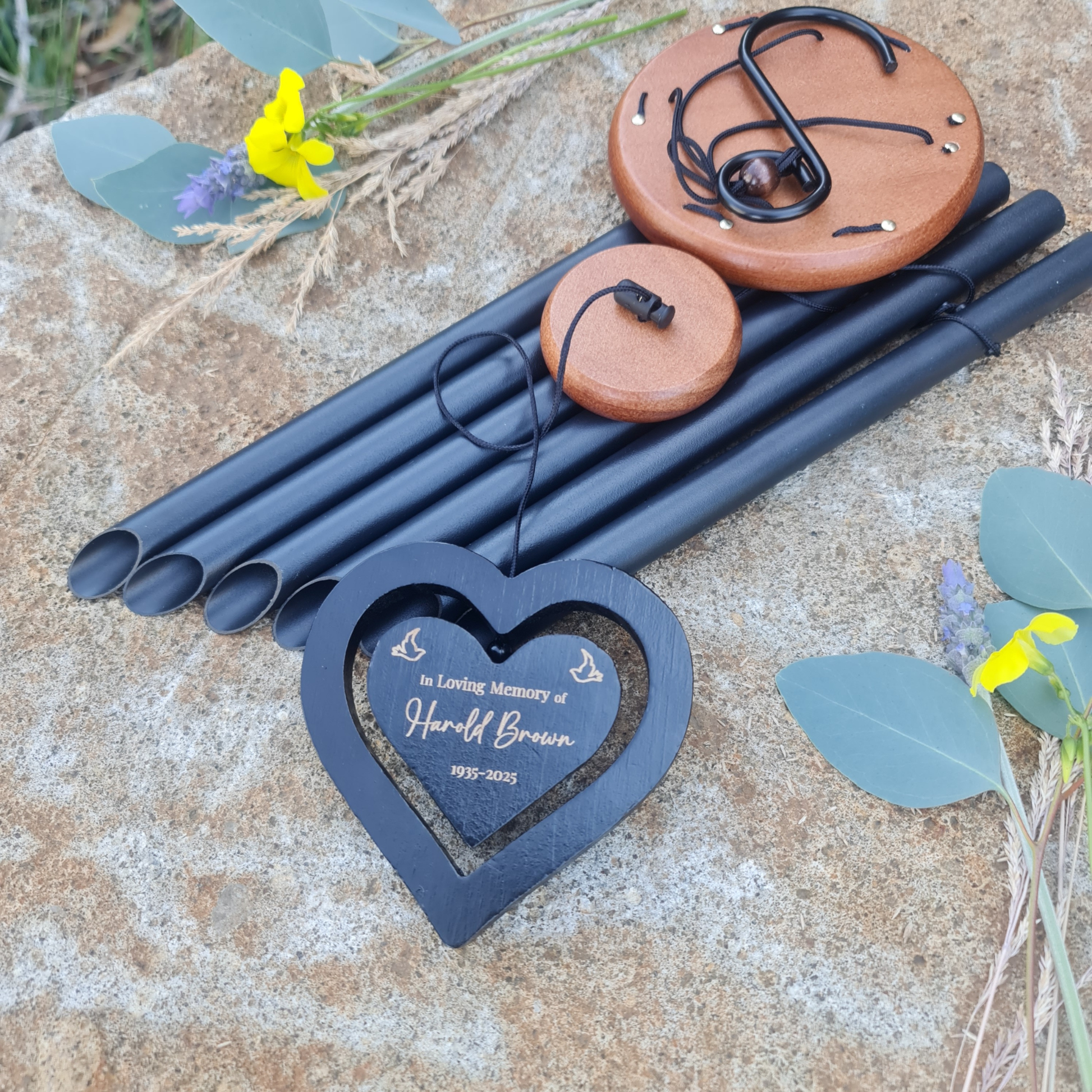 Personalised Memorial Wind Chime – Engraved Spinning Heart, Sympathy Gift