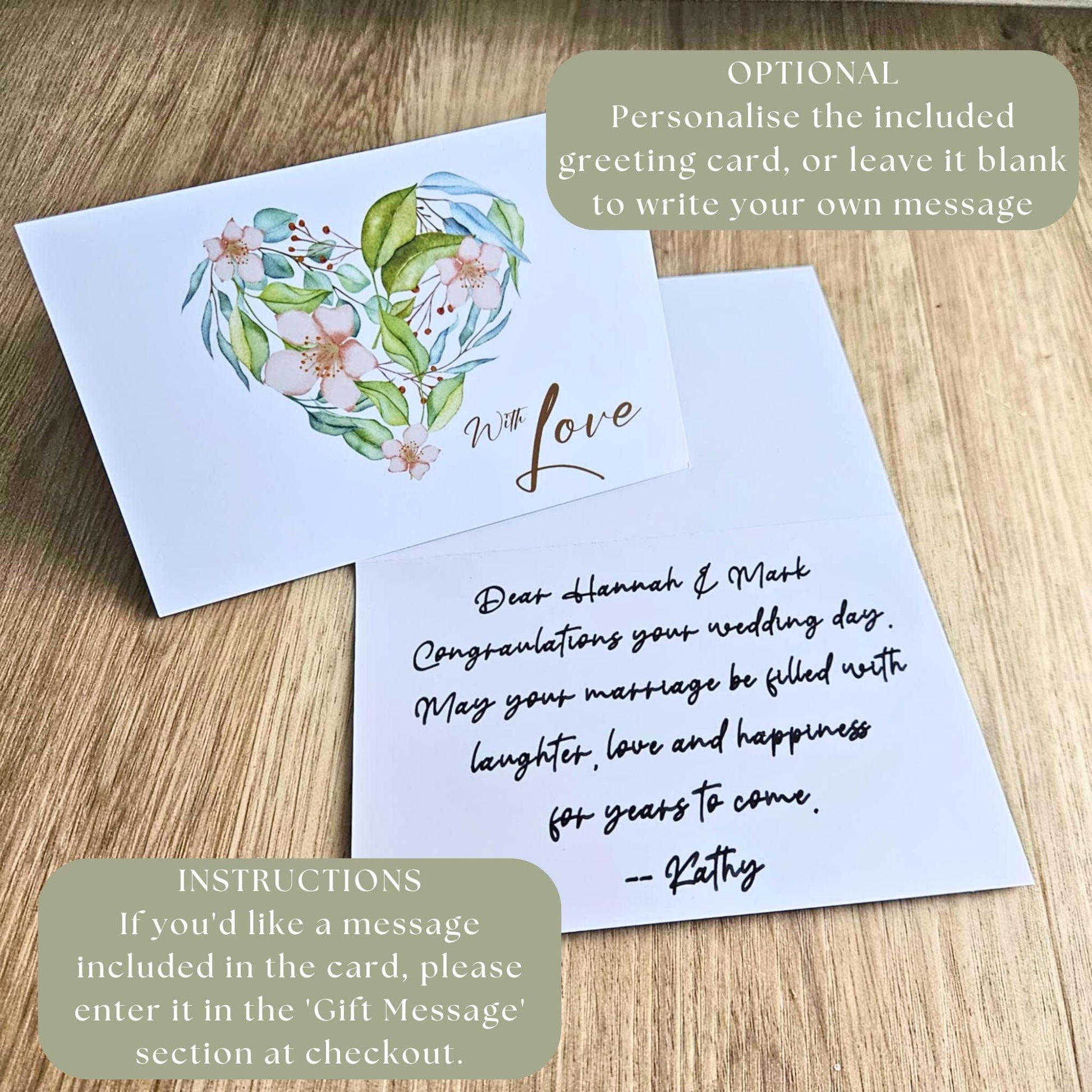 • Personalised Gold Lettering – Add your Couples’s name, or optional date